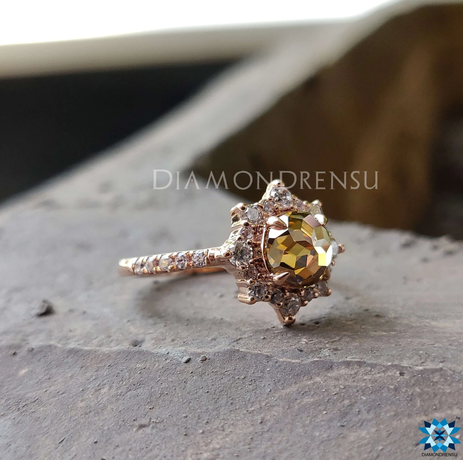 The listed unique moissanite engagement ring is also made with any shape, size, and color stone of your choice. Create a custom piece at Diamondrensu and make your moment special and memorable.