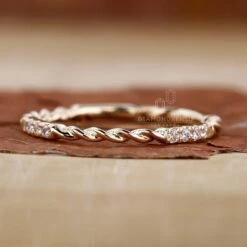 This Twisted Rope Pave Round Lab Grown Diamond Wedding Band features an exquisite pave setting with lab-grown diamonds crafted in a twisted rope pattern. The most interesting thing about this band is that, in this eternity ring, there are four sets of round cut diamonds, which are set on the band at some distance from each other, and it makes it a more attractive look. These round-cut diamonds are high quality, naturally grown, and conflict-free for a beautiful and sustainable wedding band. You can wear this twisted wedding band with any of your engagement rings, and it will also be a new and unique member of your jewelry box.