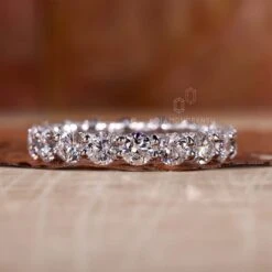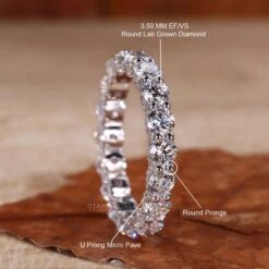 Adorn your finger with the exquisite U Prong Micro Pave Wedding Band. This 3.50 mm round lab-grown diamond eternity band by Diamondrensu features a stunning display of lab-created diamonds. With its elegant design and ethically sourced diamonds, this wedding band adds a touch of sophistication to any bridal set. Celebrate your love and commitment with this beautiful, handmade man-made diamond wedding band for women.